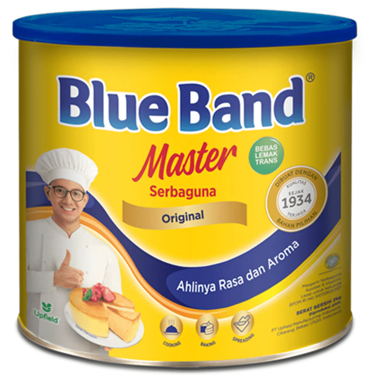 Kemasan kaleng kokoh yang melindungi Rasa dan aroma asli BlueBand yang sudah 100 tahun tak tergantikan. Cocok untuk berbagai kebutuhan olesan, baking maupun memasak.